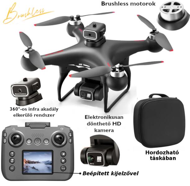 Ylr/c Aizhiyi YLr/c S116 MAX BLDC motoros drón, saját kijelző, HD+ dönthető kamera, opt. szenzor, 360° érzékelő, hordótáska